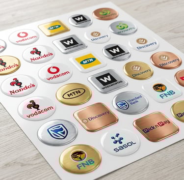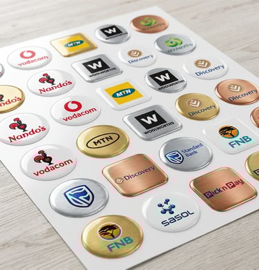 we Have Been in business for 10 years Crafting durable, eye-catching domed labels tailored for South African businesses market, we specialise in resin domed stickers delivery to all major cities, Durban, Johannesburg,Cape Town, Pretoria ect